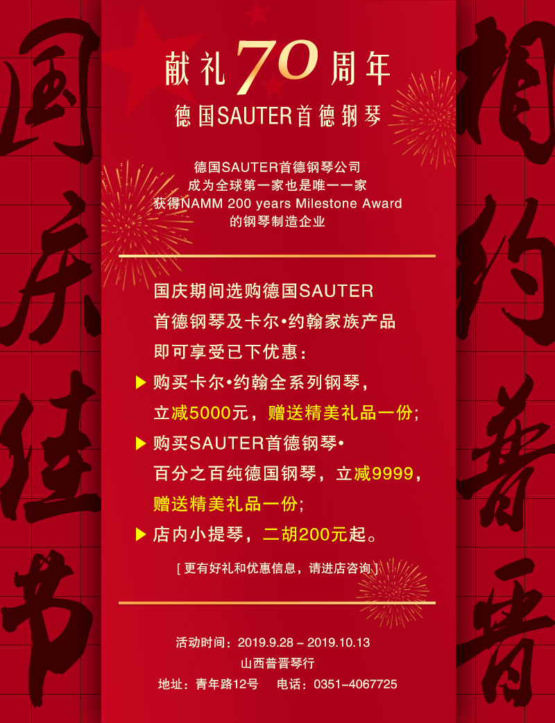 2016年11月10-12日,普晉琴行與九歌琴行將聯(lián)袂為省城的古典音樂愛好者奉上一場(chǎng)經(jīng)典的視聽盛宴,我們有幸通過貝希斯坦鋼琴官方邀約到了古典音樂界的傳奇大師希普林•卡薩利斯,將在三天內(nèi)舉辦涵蓋音樂會(huì)、大師課、藝術(shù)沙龍等多種形式的音樂活動(dòng),這也是繼“2016 晉歌音樂藝術(shù)季”后普晉琴行攜手九歌琴行又一輪重磅活動(dòng)。